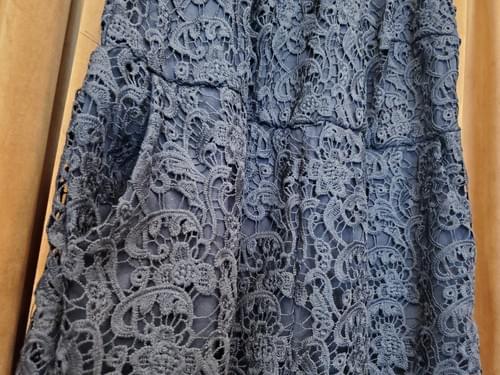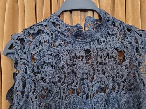Black crochet lace outer shell over attached black base layer