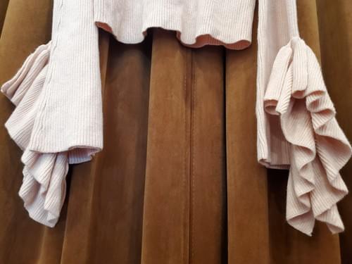 Cascading ruffle detail on outer cuffs