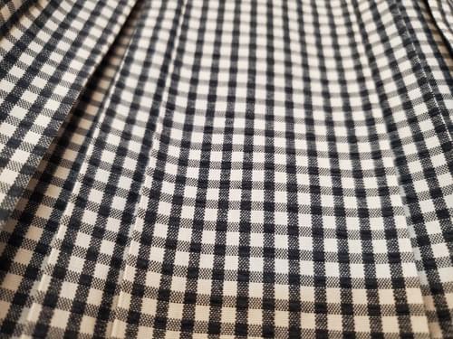 Woven (seersucker-like) gingham fabric in black, white and grey.