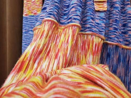 Knitted with several stiches in different colors to create a patchwork look