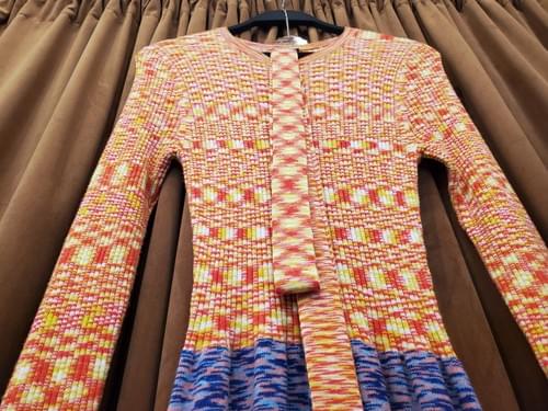 Patchwork Knit Dress with Belt-S