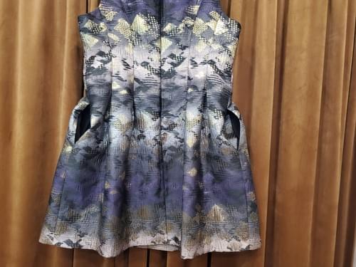 V-neck Sleeveless Metallic Jacquard Dress-16